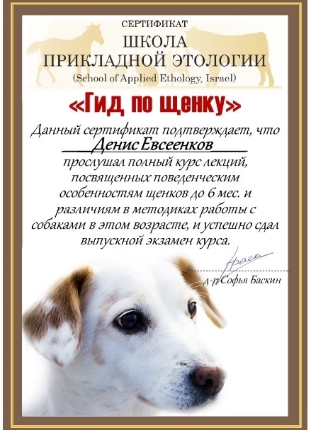 Ассоциация Прикладной Зоопсихологии, СПб - "Кинолог. Зоопсихолог-консультант"